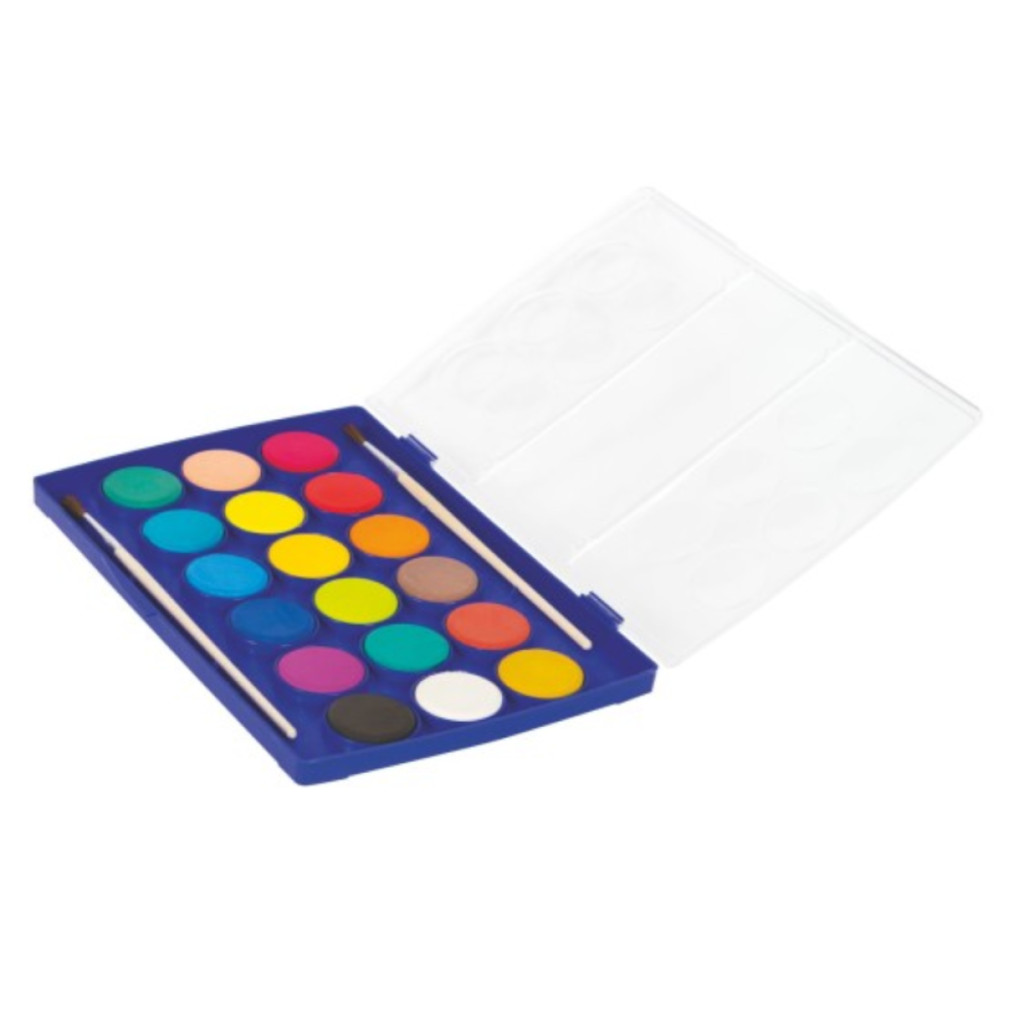 A jól fedő színek ideálisak iskolai és szabadidős célokra. Vízzel oldódó festék, vizes ecsettel tudunk festéket felvenni a festékkorongról. A színkeverés korlátlan lehetőségeket kínál a papírra és más felületekre való festéshez. A gyerekeknek igazi élmény dolgozni a szépen fedő, élénk színekkel.