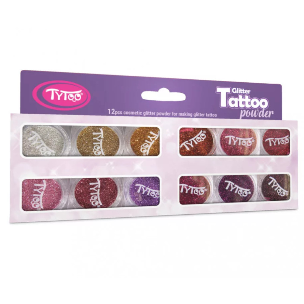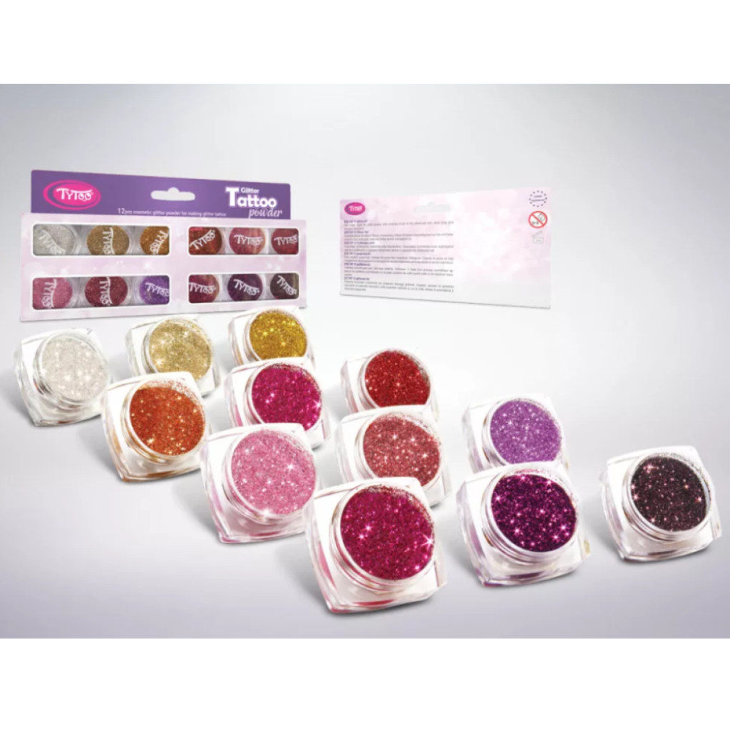 Csillámpor szett műanyag tégelyben - 12 szín