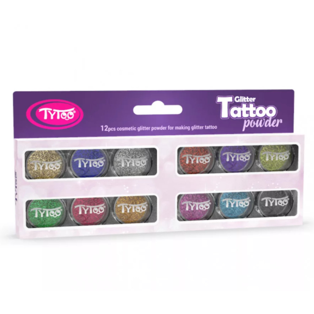 Csillámpor szett műanyag tégelyben - 12 szín