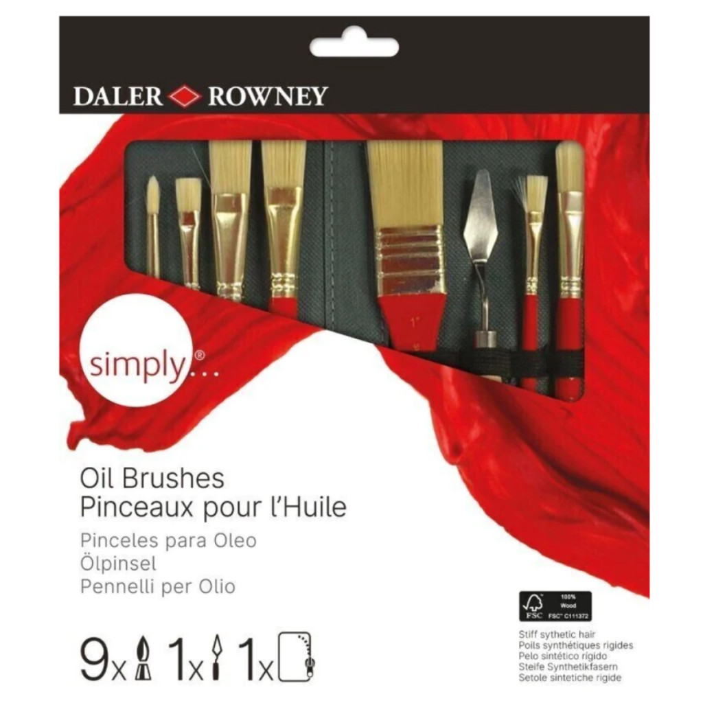 A Daler Rowney Simply olaj ecsetkészlet (10 db) ideális választás mindazok számára, akik most ismerkednek az olajfestéssel, vagy megbízható, kedvező árú ecsetszettet keresnek.