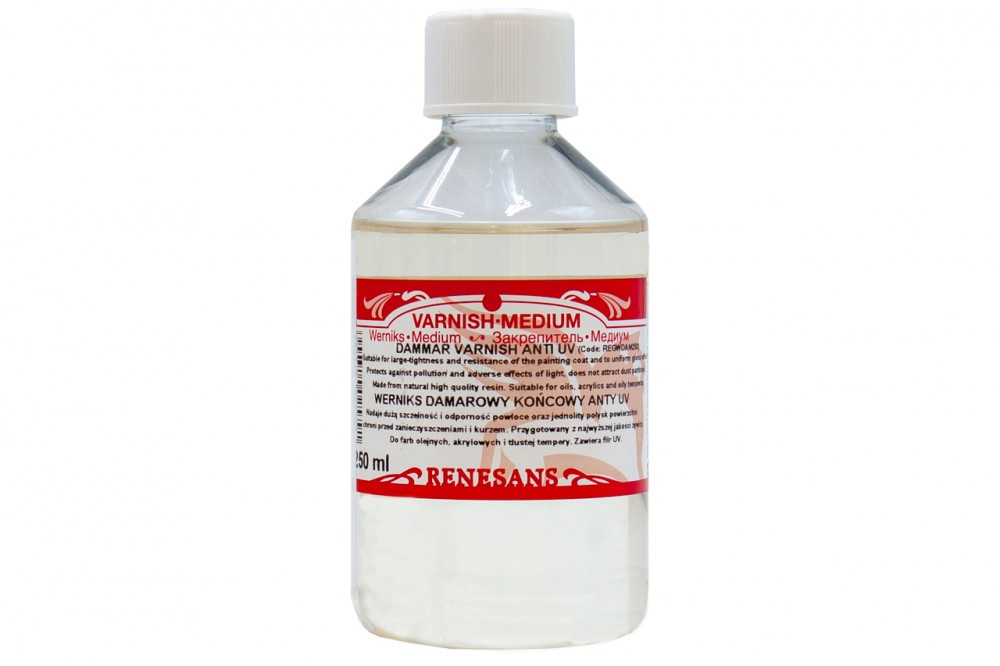 Természetes lágy dammar gyanta terpentinszeszes oldata. A matt lakk, a festmény színeinek ad kontrasztot, főként a fekete mélységét emeli ki.