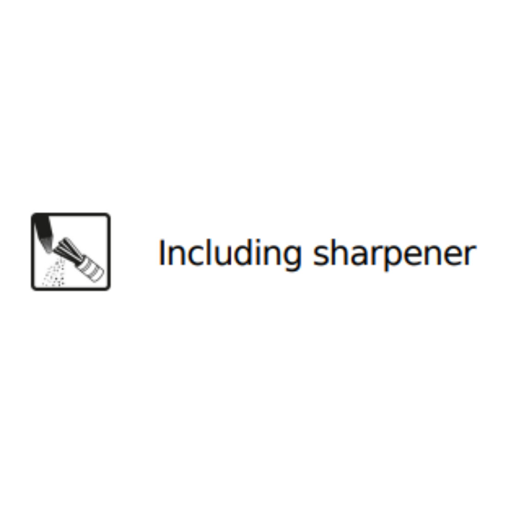 A nyomógomb hegyezőt tartalmaz, csavarással nyitható.