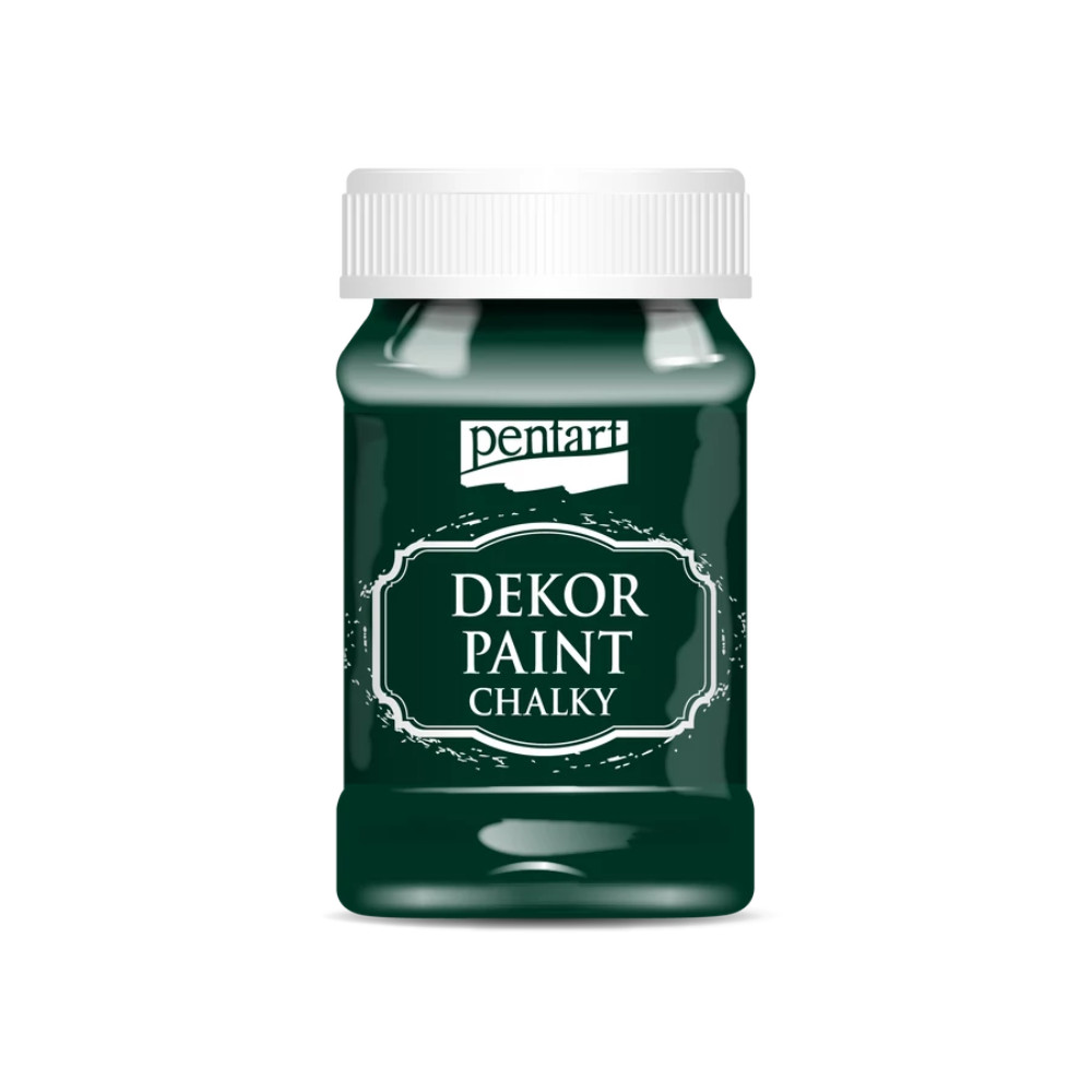 A Pentart Dekor Krétafesték 100 ml – Fenyőzöld megbízható, könnyen kezelhető választás mindazoknak, akik szeretnék otthonukat, bútoraikat vagy kreatív alkotásaikat egyedi, matt, vintage stílusú felülettel kiegészíteni.