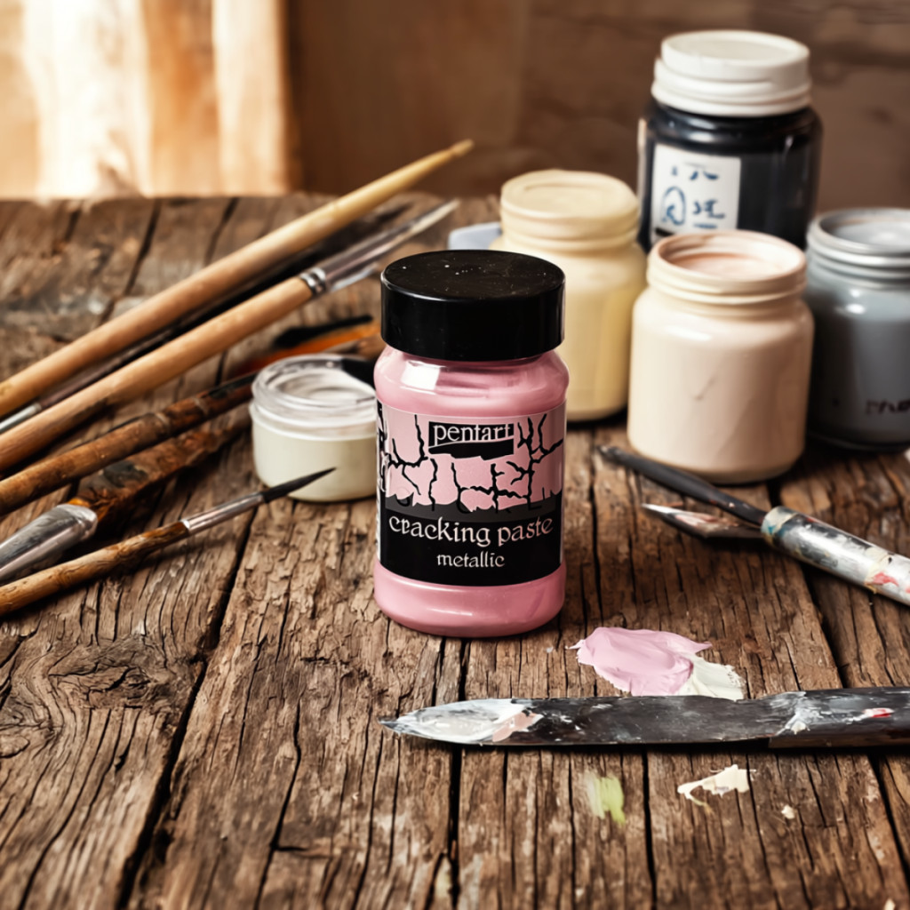 A felületet használat előtt érdemes portalanítani és alapozni, hogy a paszta jól tapadjon. A Pentart repedőpaszta metált egyenletes vagy szándékosan változó vastagságban vidd fel, attól függően, milyen repedésmintát szeretnél elérni. A száradás ideje függ a rétegvastagságtól és a környezeti körülményektől.