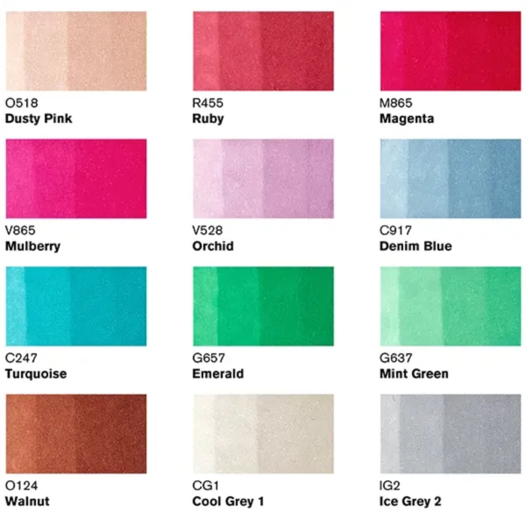 Általános felhasználásra, hobbi technikákra, manga rajzolásra is alkalmas kitűnő minőségű alkoholos filctoll készlet. Lakberendezők, kertépítők látványterveik elkészítéséhez is használhatják a panton színeket.