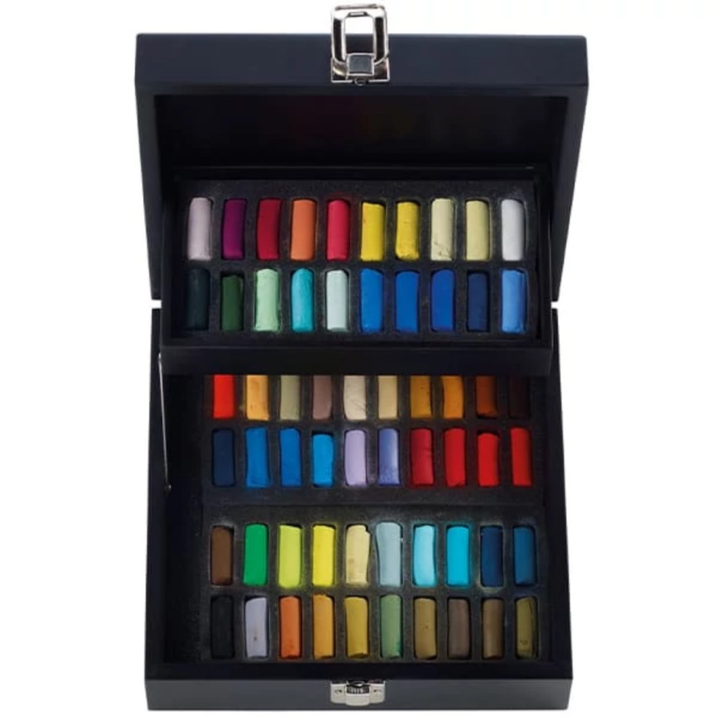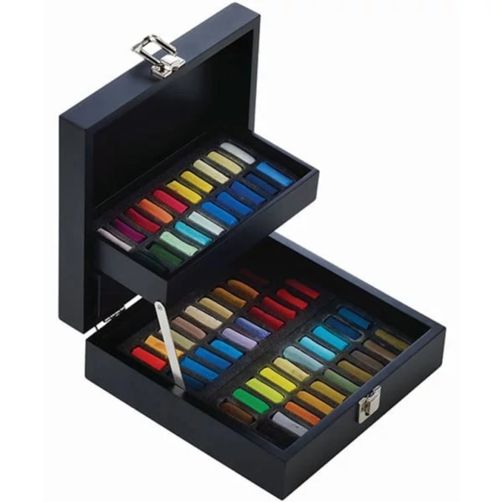 A Sennelier professzionális minőségű porpasztell készlete igazi különlegesség minden művész számára. Elegáns, masszív fadobozban érkezik, amely nemcsak esztétikus, hanem biztonságosan védi is a pasztellkrétákat.