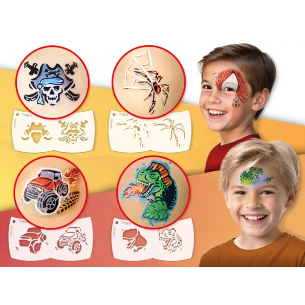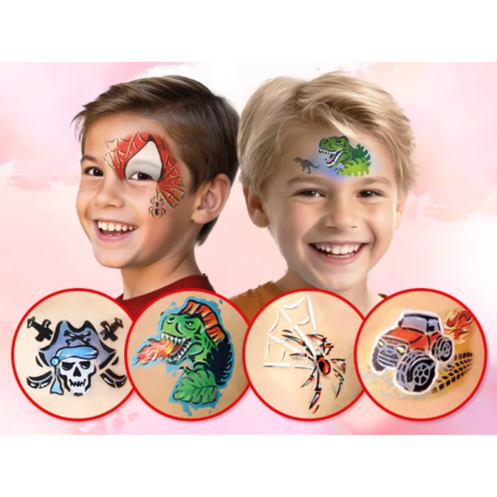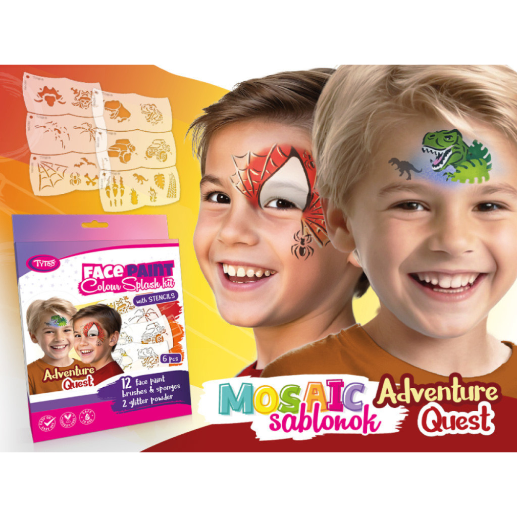 A mosaic sablonok segítségével könnyedén festhetsz precíz és gyönyörű mintákat. A sablon formája úgy van kialakítva, hogy tökéletesen illeszkedjen egy kisgyerek arcára, és könnyen kezelhető legyen, így a használata is rendkívül kényelmes. A minták részét képező illesztési pontok megkönnyítik a minták pontos egymásra helyezését, el is veheted és ugyan oda vissza is teheted festés közben, így segítenek a színek cserélgetésében vagy újratöltésében, hogy mindig elérd a tökéletes eredményt.