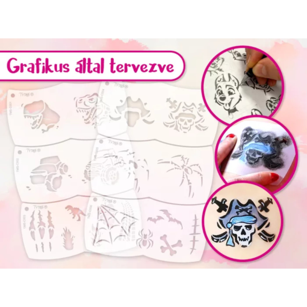 A Sablonok, tartósak, bármennyiszer újra használható, ha vigyázol rájuk. Tisztítsd meg a sablont (először szappanozd be majd mosd le vízzel) és a szivacsokat használat után, hogy azok hosszú ideig megőrizzék minőségüket