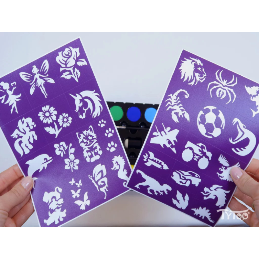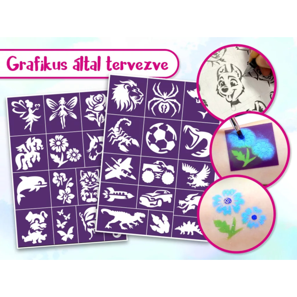 Arcfestő sablonok használatával gyorsan, könnyedén festhetsz gyönyörű mintákat. A készletben található öntapadó sablonokkal a legkisebbek is könnyedén varázsolhatnak mintákat.