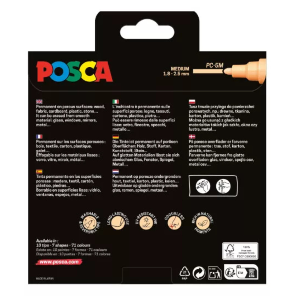 UNI POSCA PC-5M közepes méretű kúpos csúcsa korlátlan szabadságot kínál, minden célra használható író-és festőeszköz. Ideális határozott vonalvezetésű, kontúros munkákhoz.