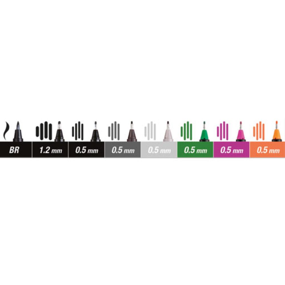 - 6 db UNI PIN tűfilc 0,5 mm: Narancssárga, Rózsaszín, Zöld, Világosszürke, Sötétszürke, Fekete