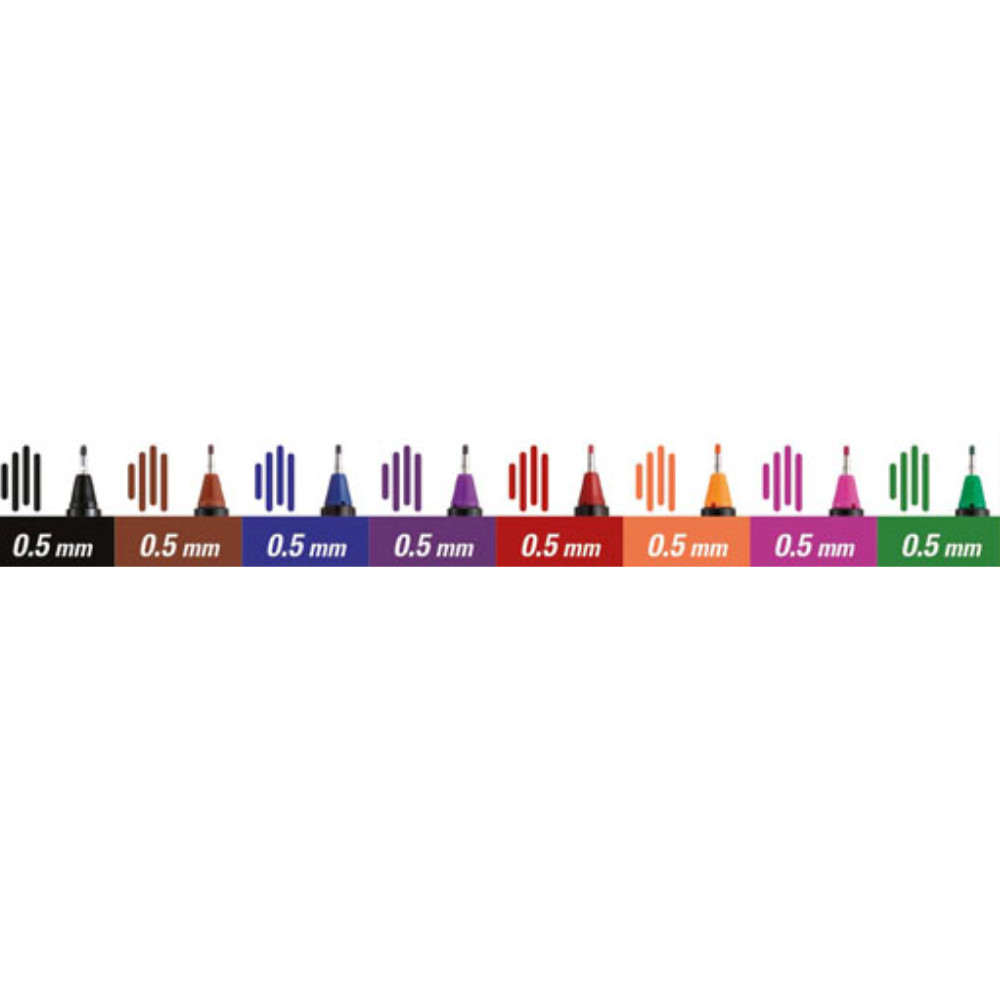 - 8 db UNI PIN tűfilc 0,5 mm: fekete, barna, kék, lila, piros, narancssárga, rózsaszín, zöld