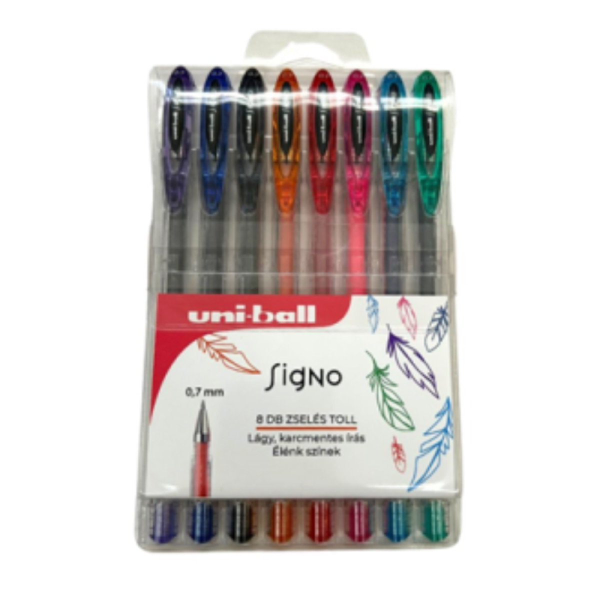 Zselés toll készlet - átlátszó testű, a tinta színével megegyező kupakkal