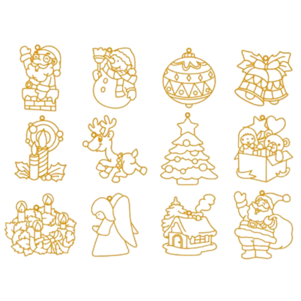 • 12 fényvarázs forma, arany keretes karácsonyi minták