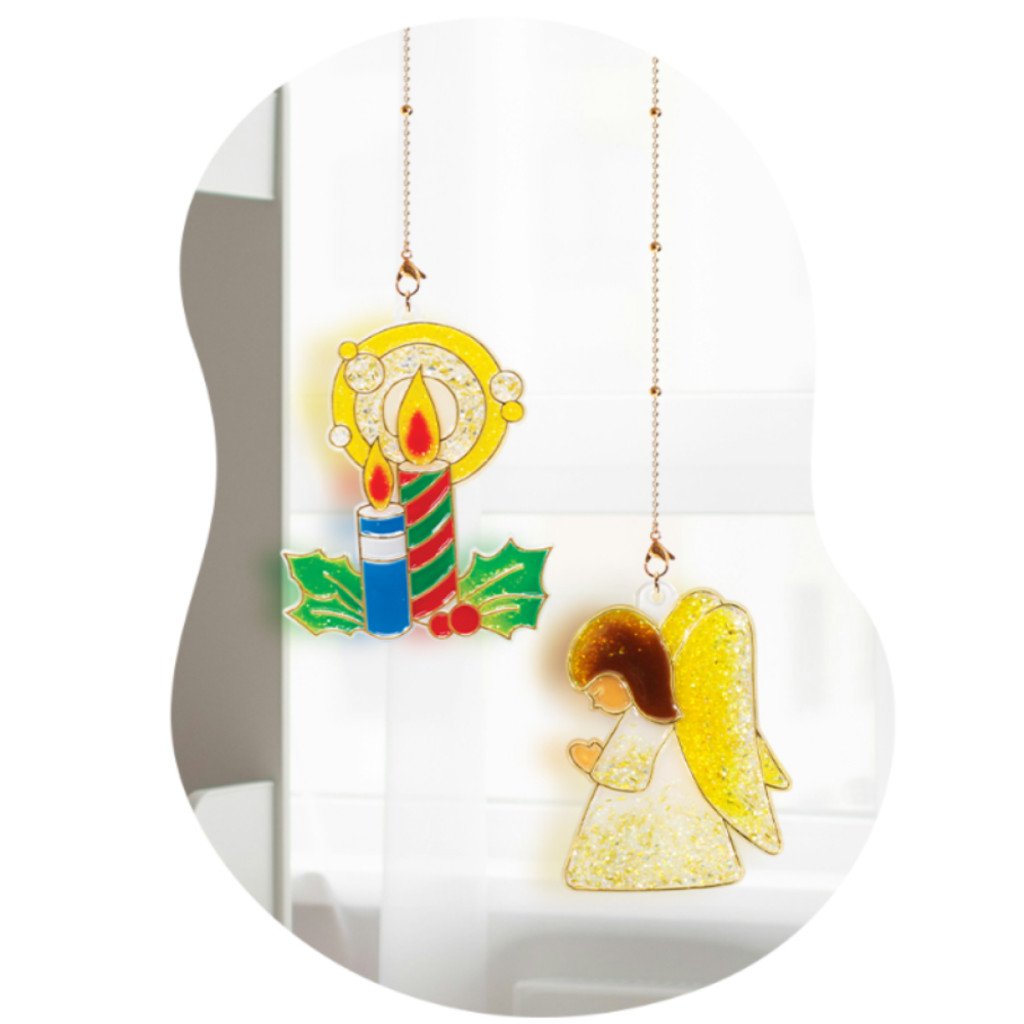 Az üvegmatricafestéket közvetlenül a tubusból nyomva, töltsük ki a fényvarázs formát. Nincs szükség kontúrozásra, a formák kontúrozottak. 8-12 óra száradás után használhatjuk, mint kulcstartó vagy felakasztható dísz.