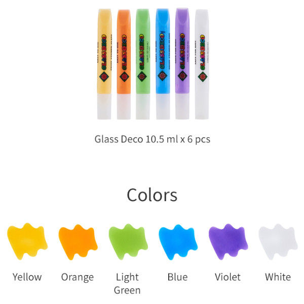 • 6 szín (sárga, narancs, világoszöld, égkék, lila, fehér) - 6 x 10,5 ml