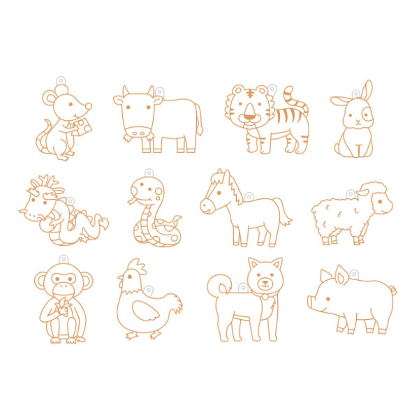 • 12 fényvarázs forma, arany keretes kínai állatövi jegyek